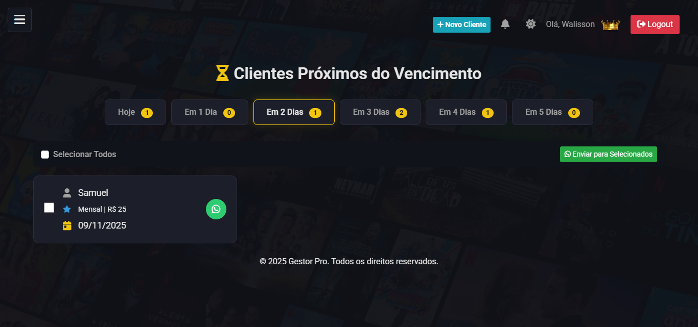 Programe e crie lembretes para ser enviado no vencimento. Escolha o melhor dia para enviar o vencimento ao seu cliente. 100% automático.